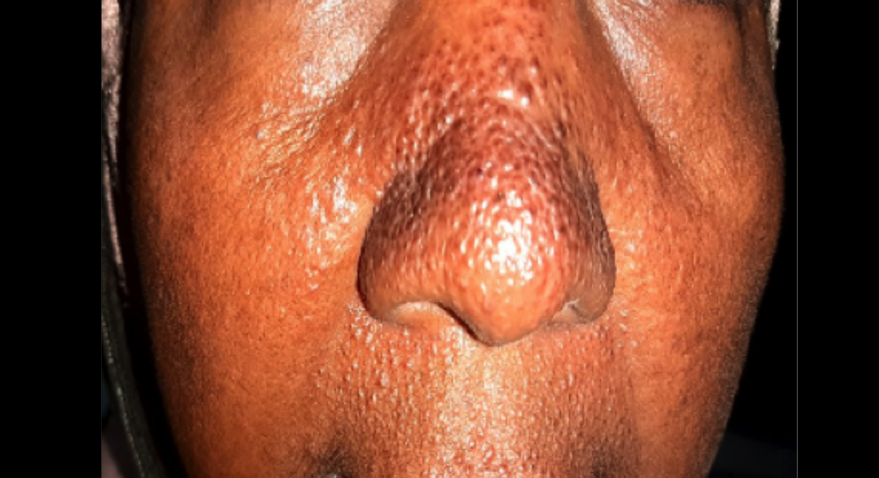 Figure 1: Multiple tiny pseudo-vesicular papules over the nose and upper lip.