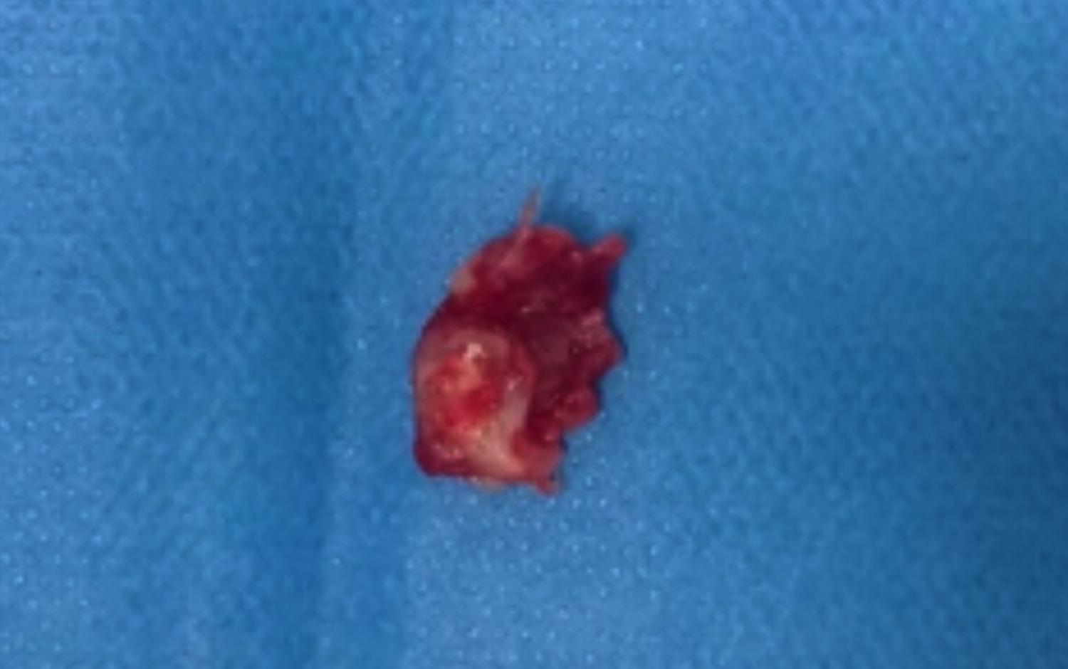 Figure 3: Postoperative picture of 2 × 2 cm mass excised from left external auditory canal and middle ear cavity via post-auricular approach.